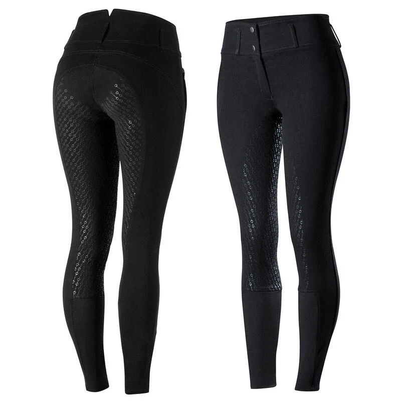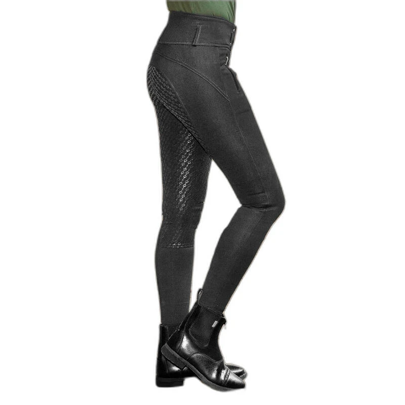 Équitation femme: pantalon sobre, moderne et confortable. Taille haute pour une silhouette flatteuse. Motif mors discret sur les fesses. Idéal pour l’entraînement et les concours.