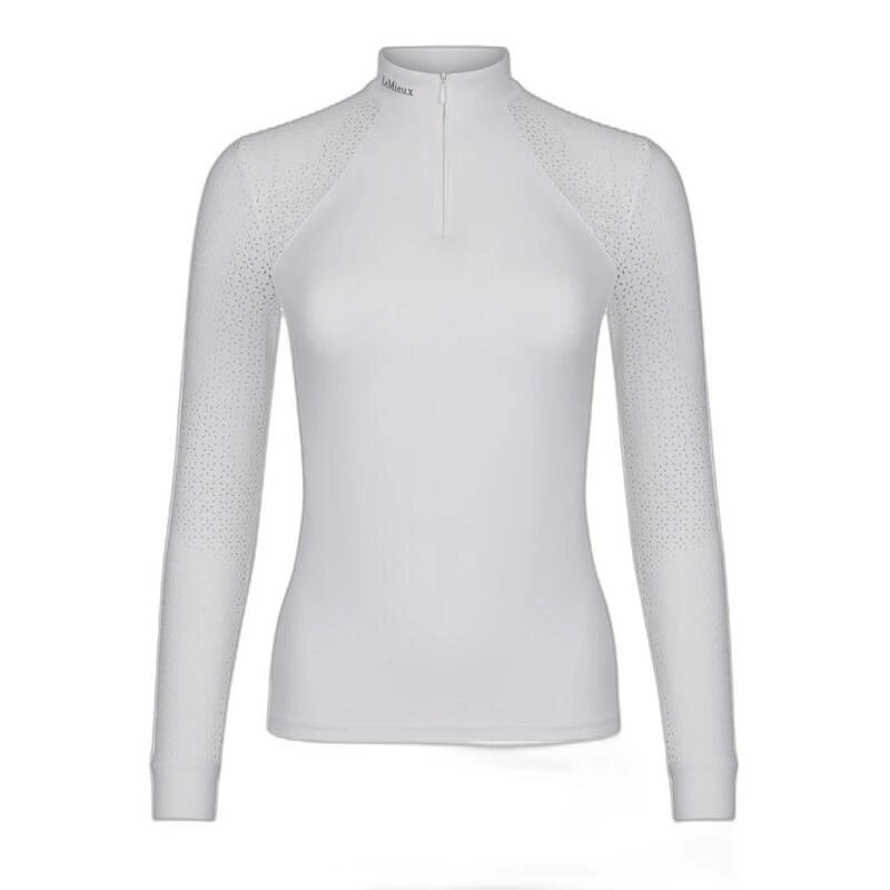 Découvrez la chemise de concours élégante et performante pour femme Olivia de LeMieux, avec son tissu doux et extensible, et ses détails diamantés et en dentelle délicate.