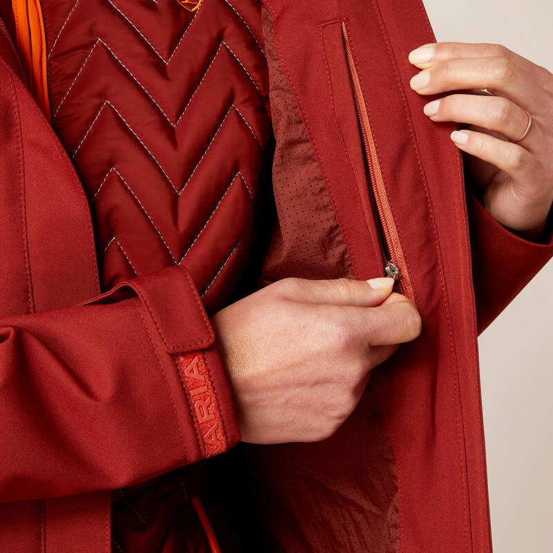 Restez au sec lors de vos sorties équestres avec la veste imperméable à capuche femme Ariat H2O, conçue pour une protection ultime.