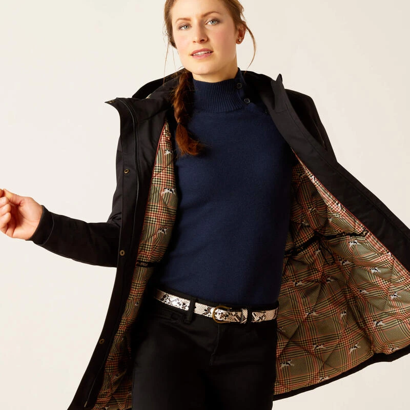 Découvrez la veste imperméable Ariat Argentium, alliant style équestre et modernité pour les cavalières et les passionnées de mode.